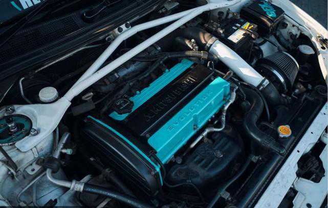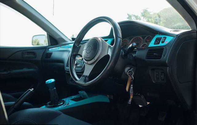 这台JDM风的EVOVII原厂已经拥有了十足的运动范,车主只是按照自己的喜好匹配了一套蓝绿风格的色彩,营造出不一样的视觉效果。