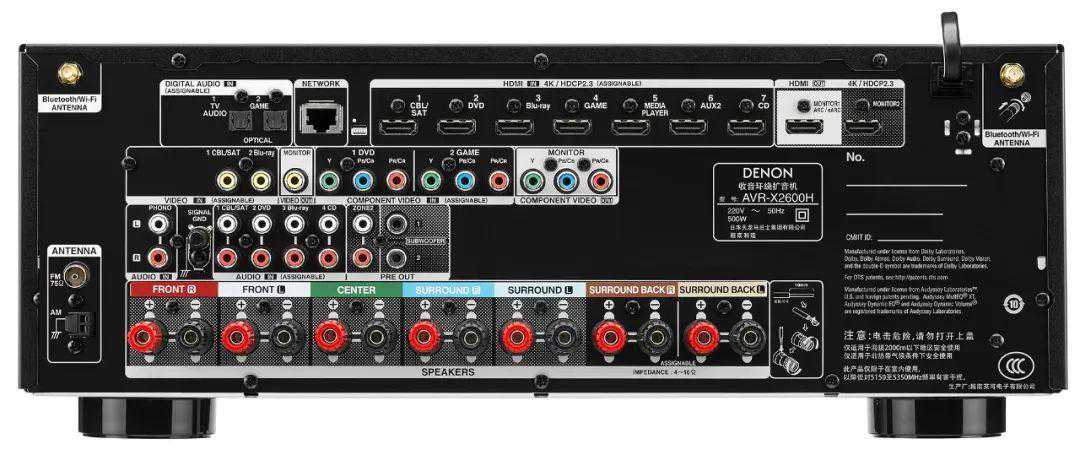DenonAVR-X2600H除了拥有8组HDMI输入和2组HDMI输出接口,还加入了不少新功能。所有的HDMI接口均支持eARC(增强音频回传通道),能够通过单一的HDMI线将未压缩的基于对象的音频从电视传输到接收机;ALLM(自动低延迟模式),实现无延迟游戏体验;DolbyVision、HDR10、HLG和全等高清技术,便于DenonAVR-X2600H无缝连接4K、8K高清电视和各类流媒体、游戏等播放机设备,畅享高清视听体验。