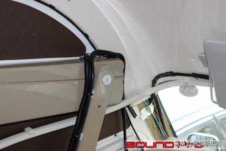 此为房车线路,对从左边伸过来的米色粗的框架,支持吊床的斜臂是可动的,线路处理为了不给电缆增加负担而大幅度转动处理。