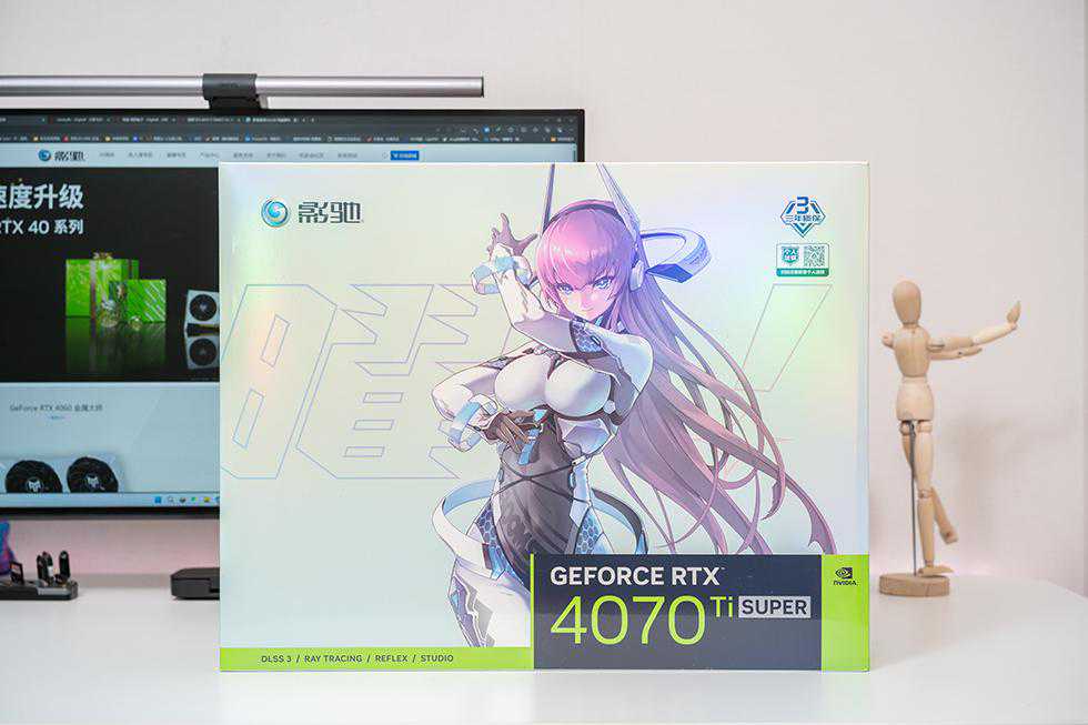 影驰GeForceRTX40系星曜显卡的包装都如出一辙:体积巨大。彩盒包装上依旧星曜娘的二次元卡通图涂装,左上角有三年质保的标识,影驰售后很方便的一点是支持个人送保,极大的便利了玩家保修流程。