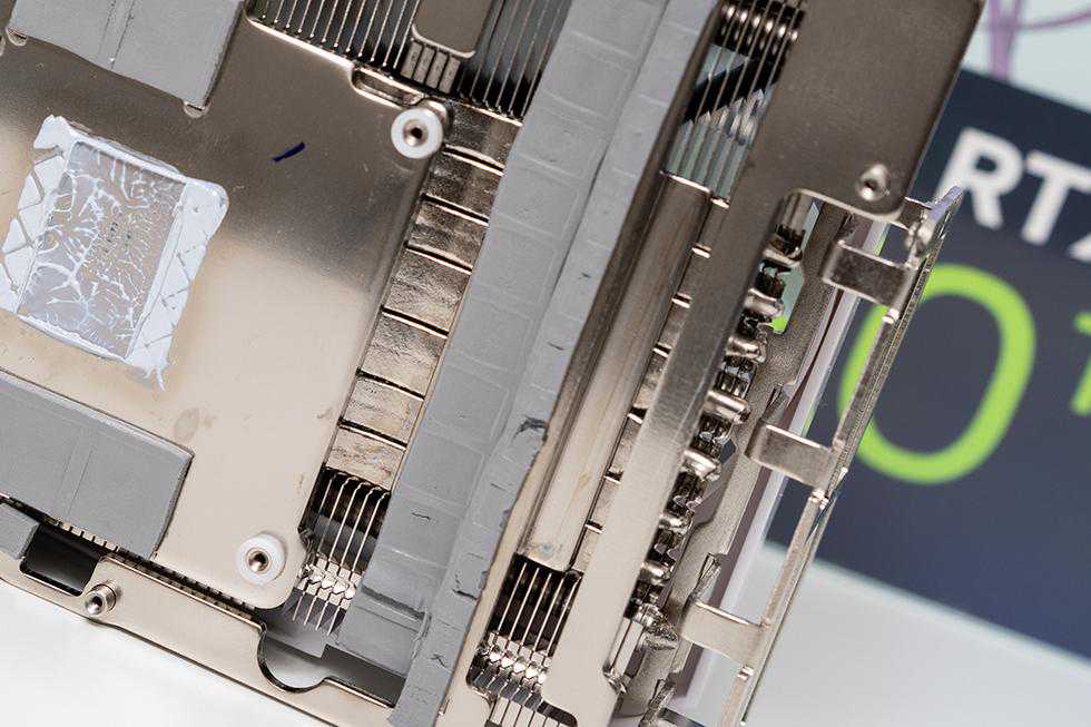 影驰GEFORCERTX4070TiSUPER星曜OC显卡内部布置了一体式覆盖高效均热板,2Φ8mm+5Φ6mm镀镍复合热管以及大面积散热鳍片。结合回流焊接工艺,带来更强的散热性能,合金加强件也能有效防止显卡变形,保障显卡的正常使用。GPU核心与显存,GPU与显存供电的MOSFET,电感与电容等器件上均覆盖了散热硅脂垫。