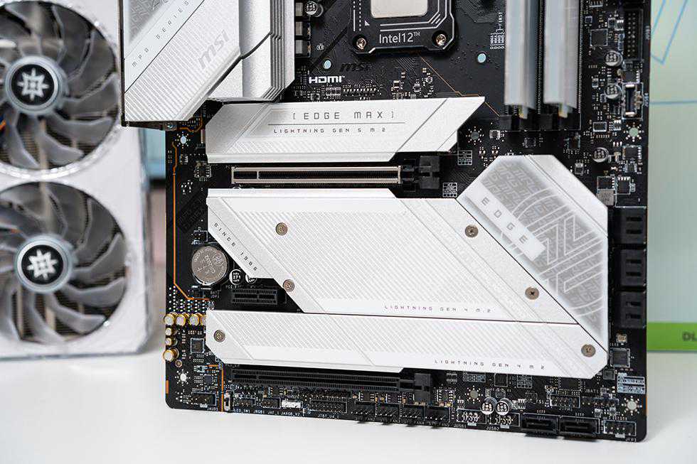 主板提供两根PCI-Ex16插槽和一根PCI-Ex1规格的插槽,在上方带有金属屏蔽加固的PCI_E1是由CPU所提供的插槽,能为4090提供最大的输出传输支持。同时配备了5个槽位,满足大容量存储用户的需求。