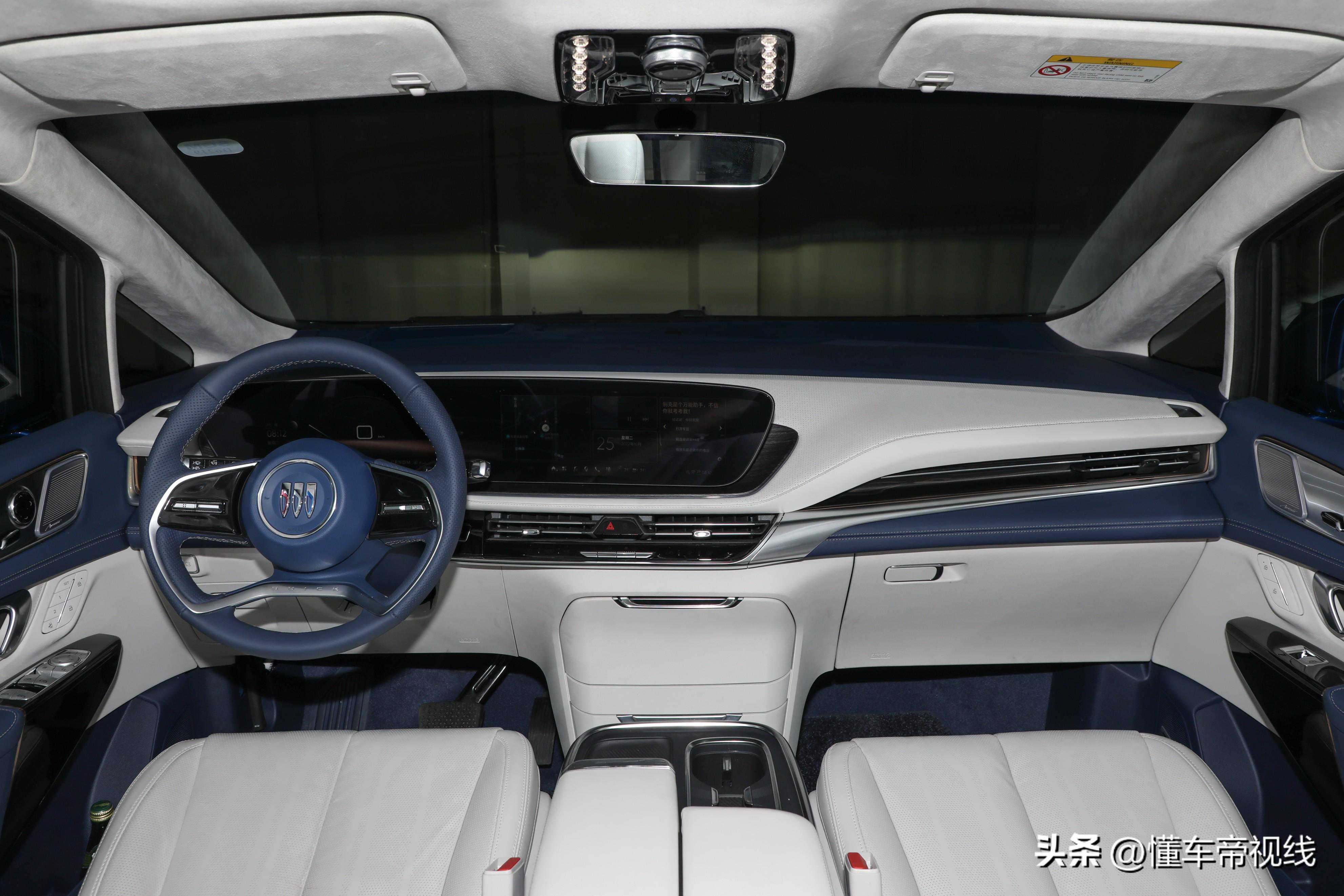 在内饰设计上,别克世纪六座版可选赤霞红/页岩黑和烟波蓝/云峰白两款双色配色,本次实拍车型采用烟波蓝/云峰白配色,并且这两款内饰配色为六座版车型专属。而冷杉青/云峰白双色搭配仅面向四座版提供。