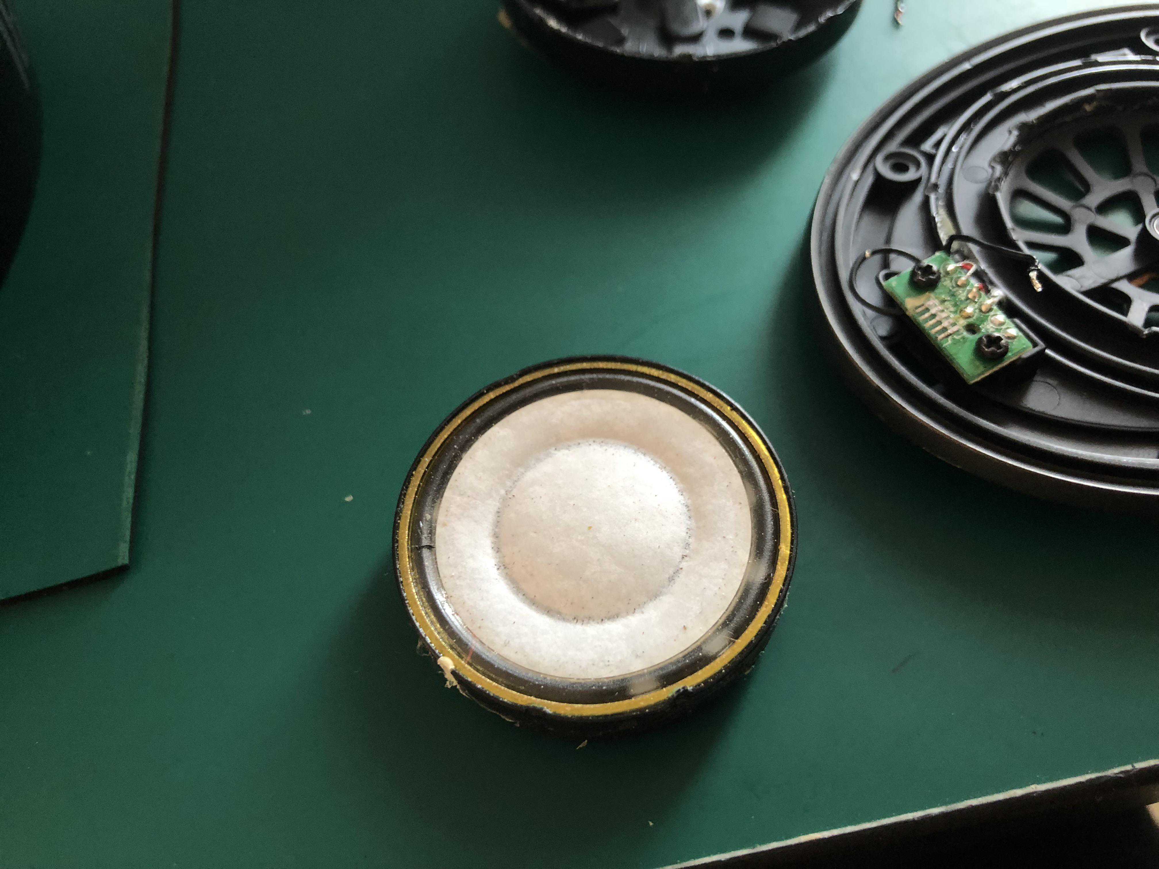 手头这台,听着听着,一边无声了,以为是接触不良,可是怎么带着蹦跶都没有反应,想想这种耳机,带蓝牙和降噪电路,不知道会不会电路故障,于是就拆开先测试喇叭看看