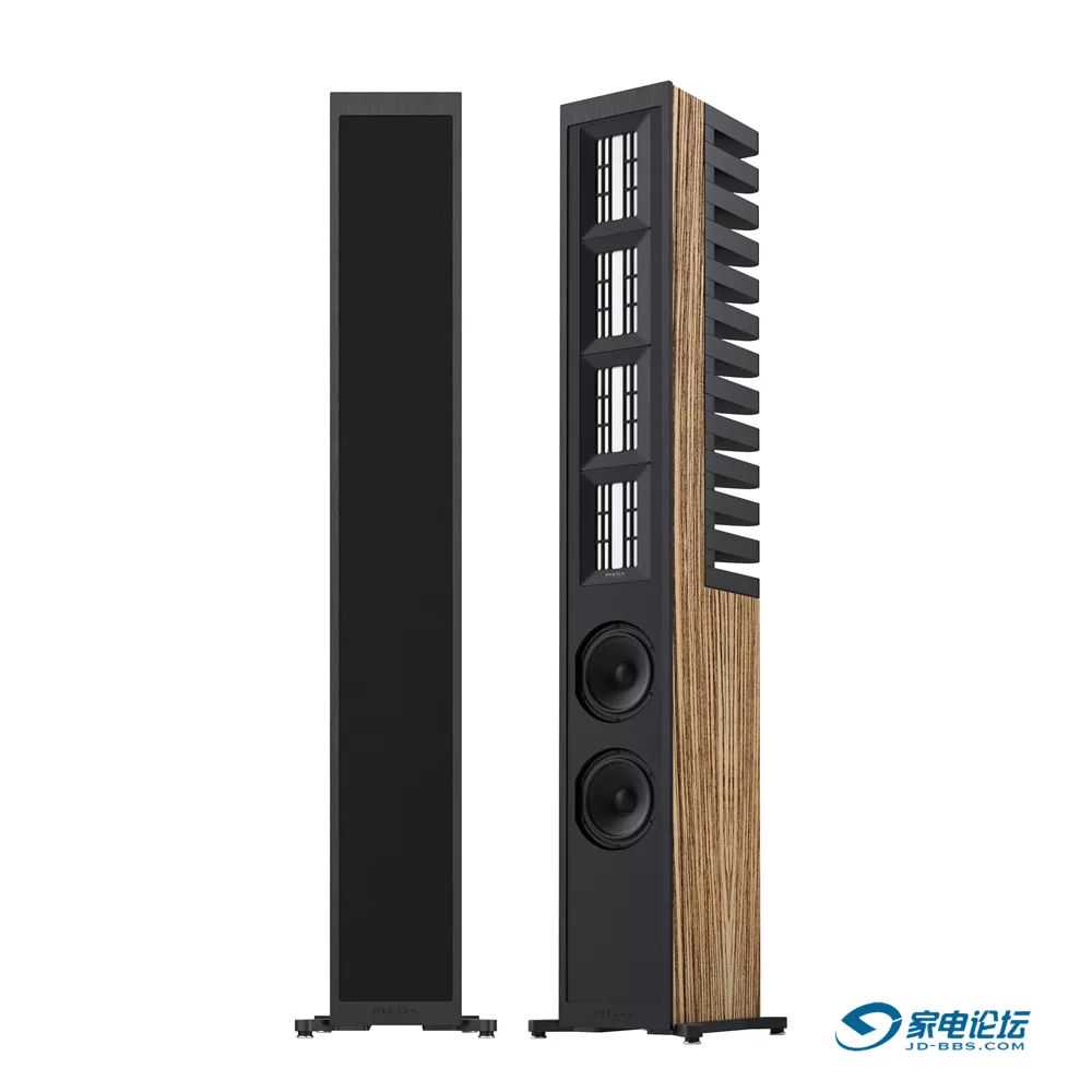 这两个型号的相同之处在于,二者都是三分频的偶极发声系统,灵敏度(92dB/W/m)和阻抗(4Ω)也都相同。