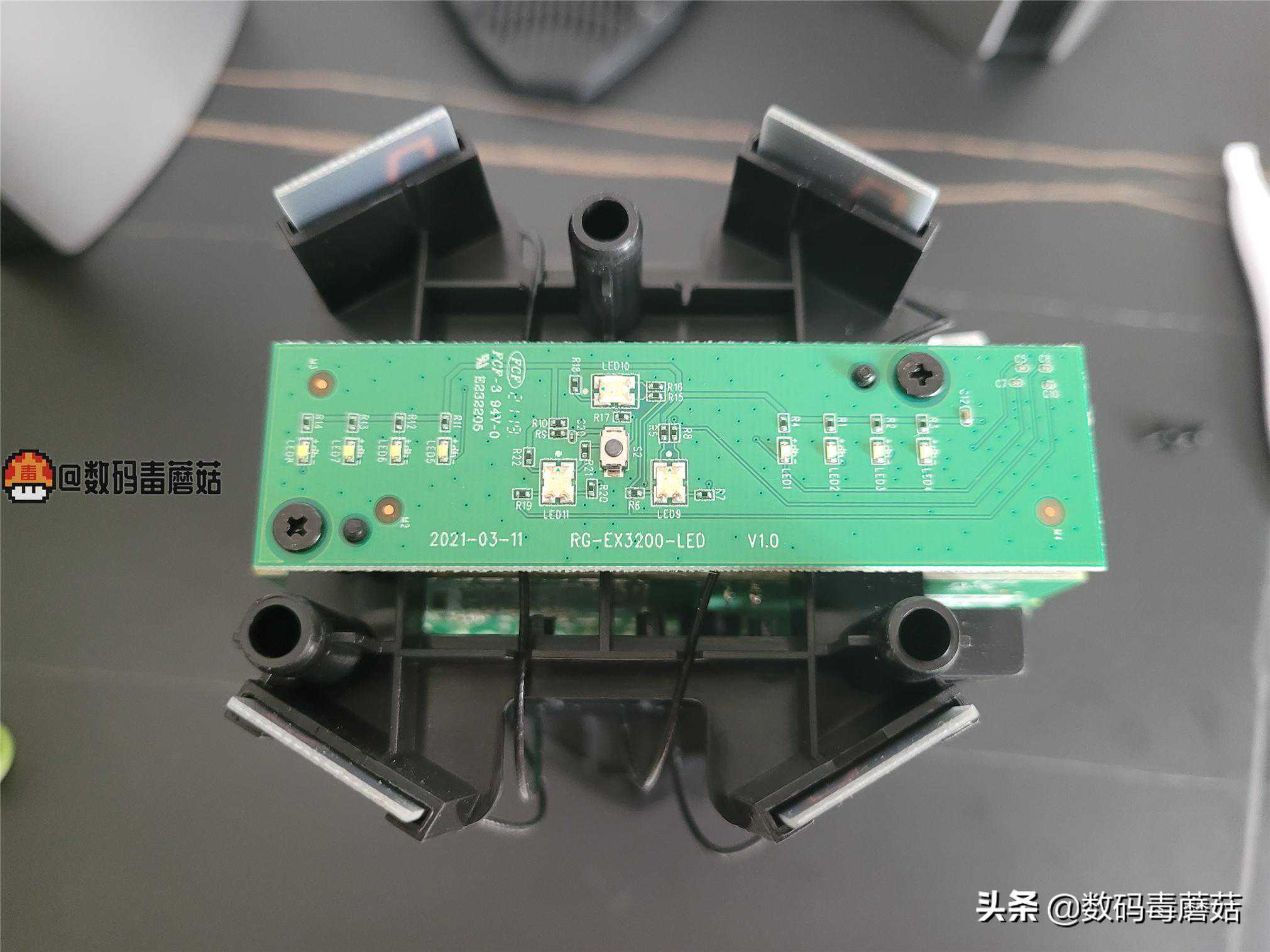 抽出主板支架,是由六颗螺丝固定在塑料支架上面的,天线非胶粘,而是像木楔一样卡在固定位,可以通过按压的方式退出来。