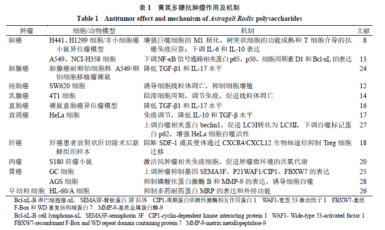 黄芪多糖抗肿瘤作用机制见表1。