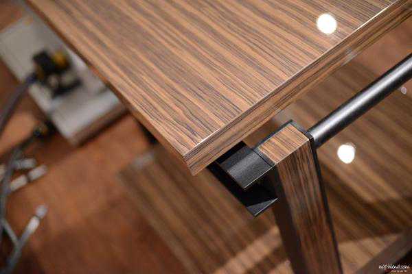 除了上方的承板可以拿下外,基本上整座音响架都是固定好了,可以看到音响架上方有四个可以调高低水平的角锥,就是用来调整上方承板水平之用,本体很有份量,采用不锈钢为主要支架,承板也相当重。