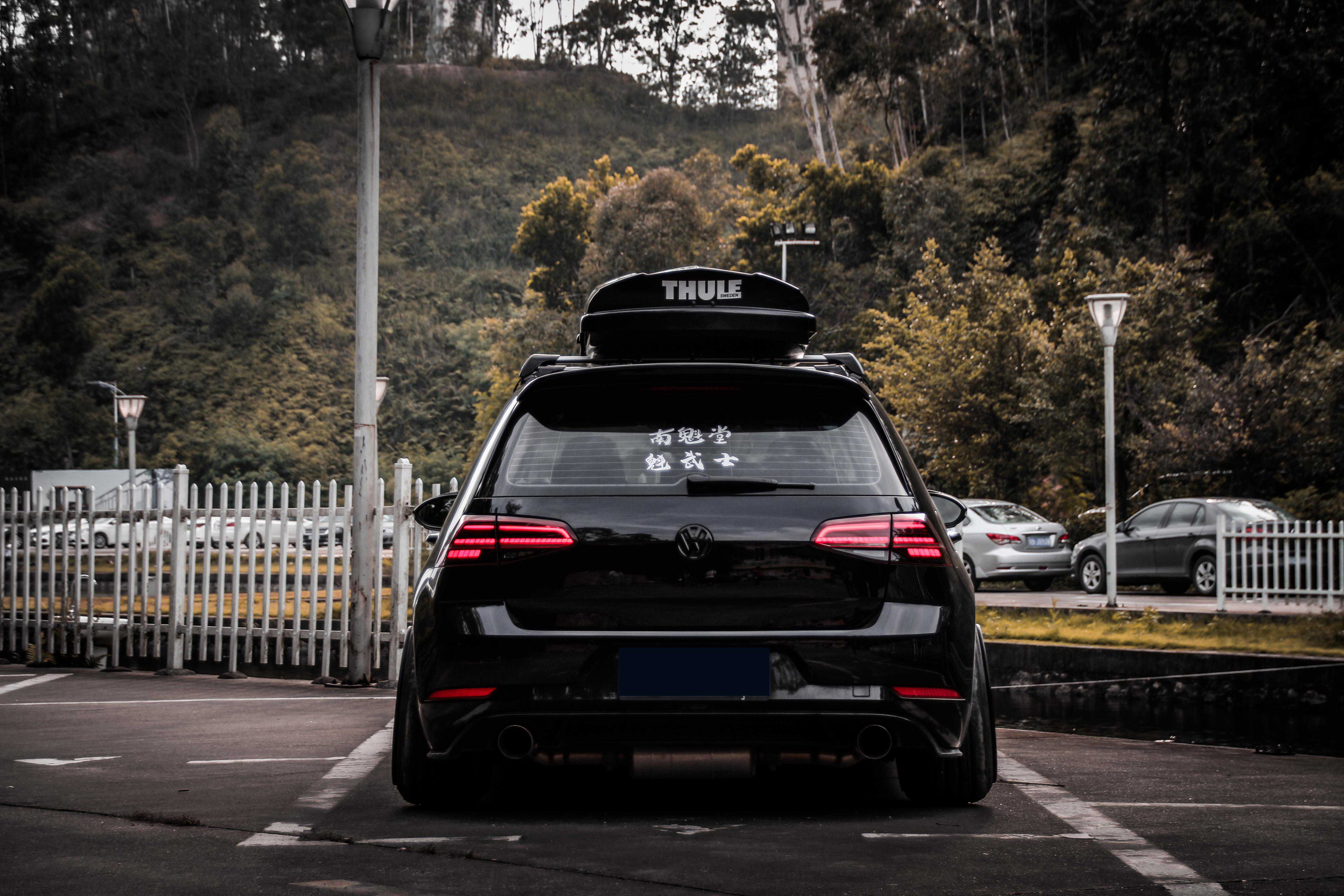 对于日常使用来说,高尔夫的空间已经非常够用,但如果用来拉货的话,那么再大的车子都会有局促的一面,更何况这种两厢小车了。于是车主为其加装了一个拓乐的小书包,黑色的车子背着黑色的书包,没有任何违和感。