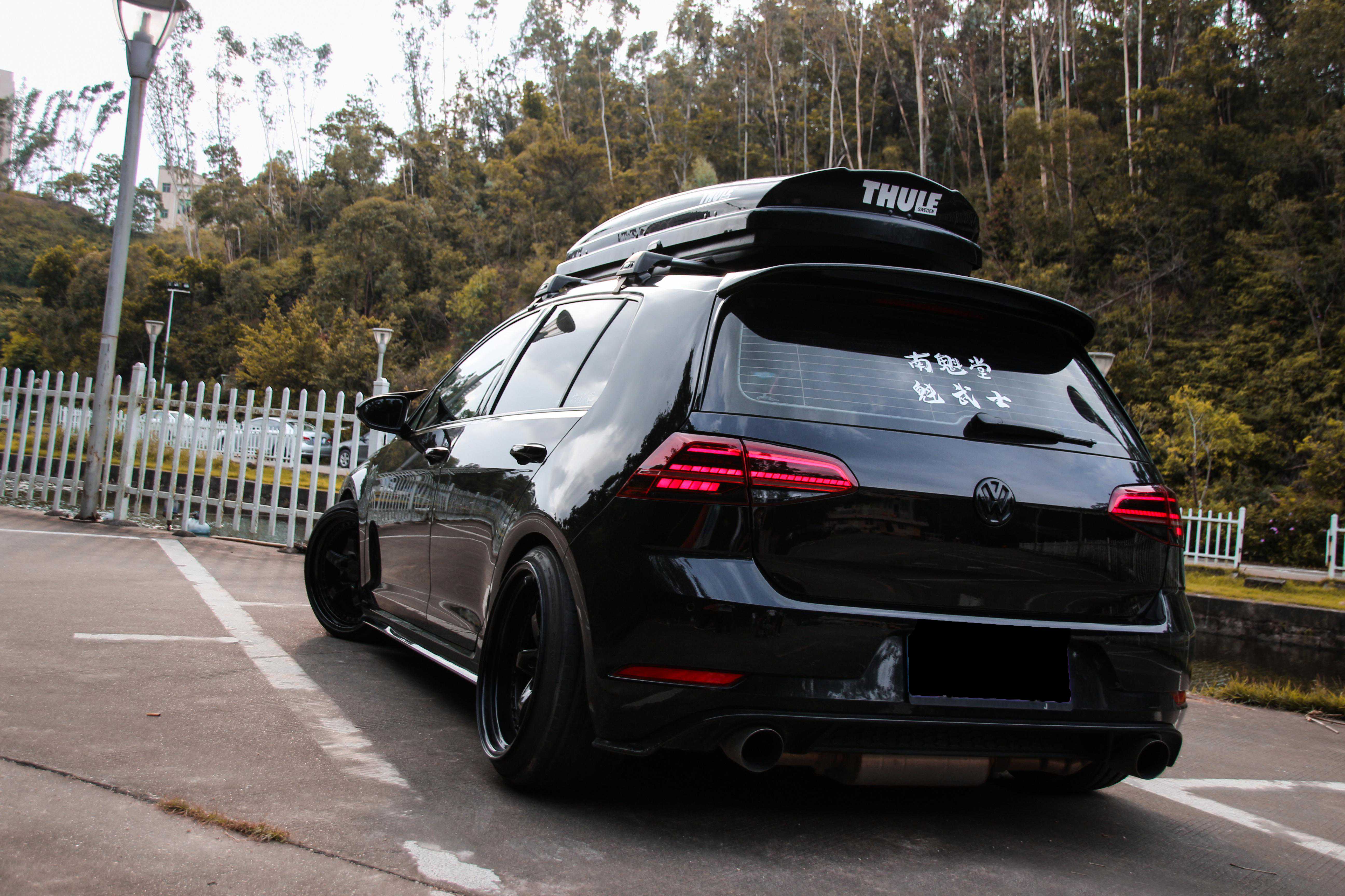 杰仔在黑化这辆高尔夫的时候也非常彻底,除了车灯还能显出白色和红色之外,其它位置全部做黑处理。