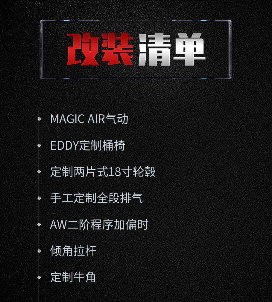 但是呢,绞牙降到很低的状态,通过性就是个问题了。而为了避免刮到底盘,也为了提升通过性,最终杰仔还是选择上了一套Magic的气动。