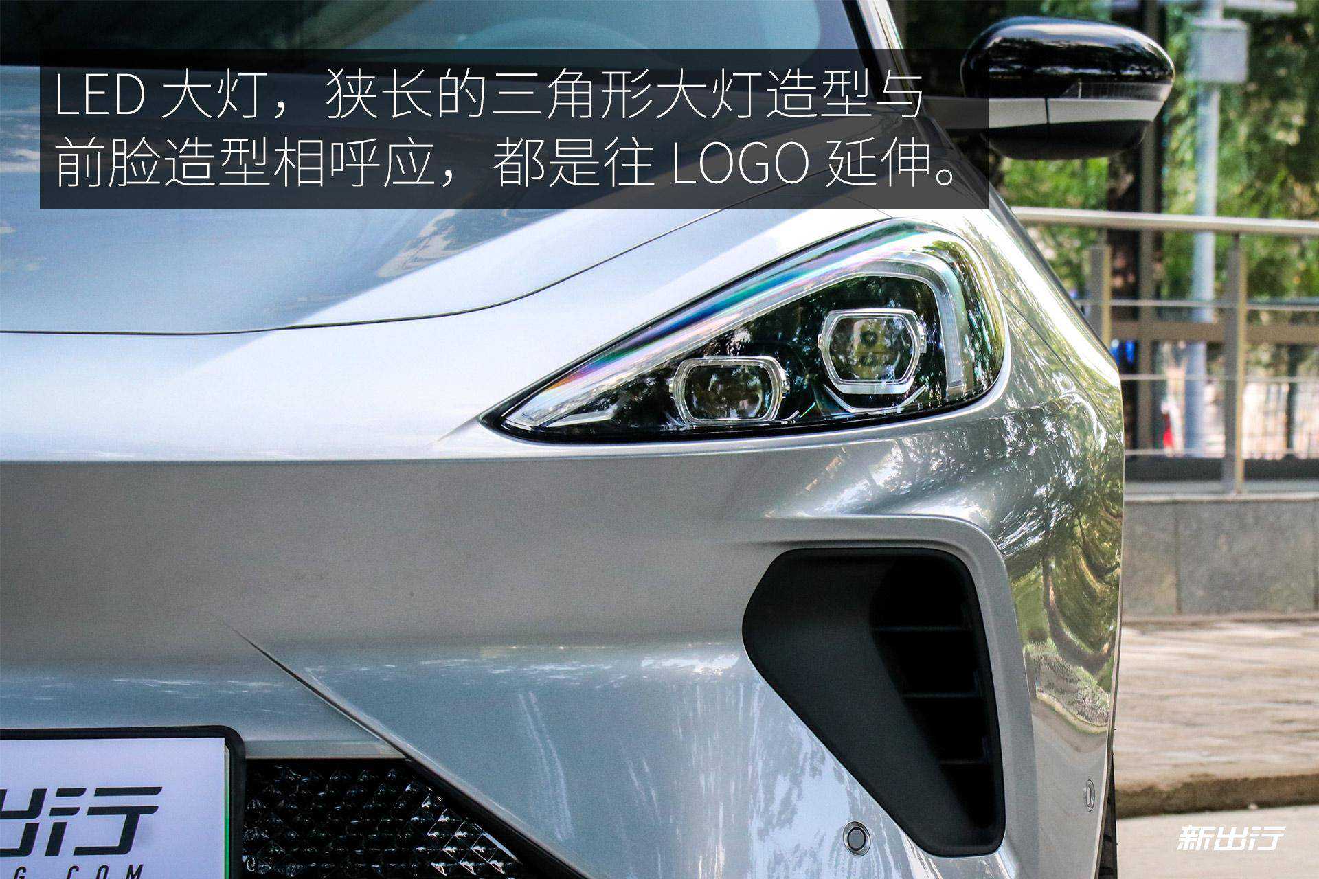 LED大灯,狭长的三角形大灯造型与前脸造型相呼应,都是往LOGO延伸。大灯下方传统的雾灯处采用了和大灯造型差不多的设计,不过这里是一个导流口,起到导流散热的作用。