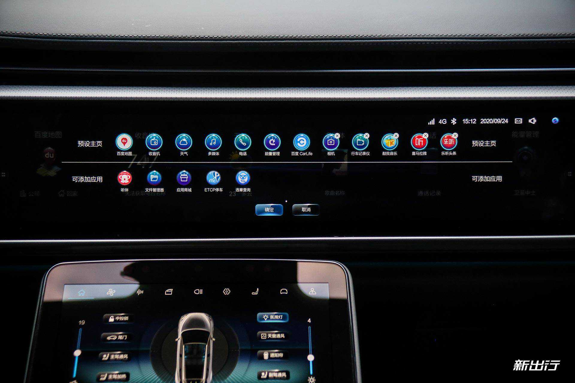 中控横向超宽一体屏尺寸为20.3英寸,官方称这是一块4K屏,具体像素目前尚不清楚。中控屏主要是显示屏,下方的10.2英寸触控屏主要是用于车辆设置和空调调节等。