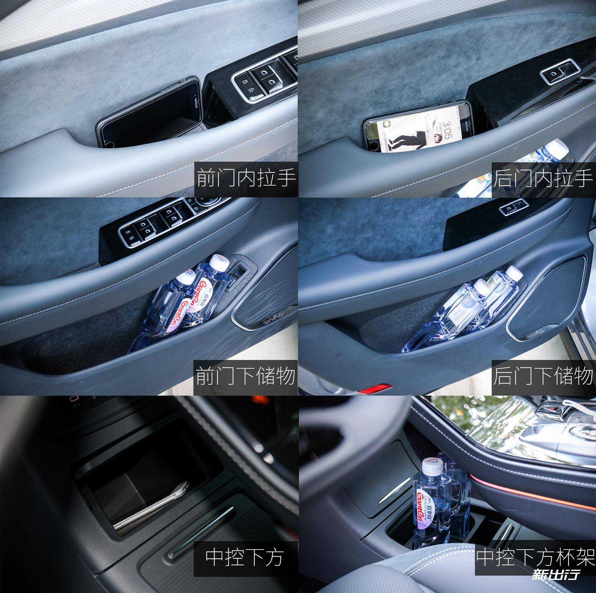 后排扶手放下后同样有两个杯架和一个植绒的小储物空间,放置饮料和手机等物品完全没问题。