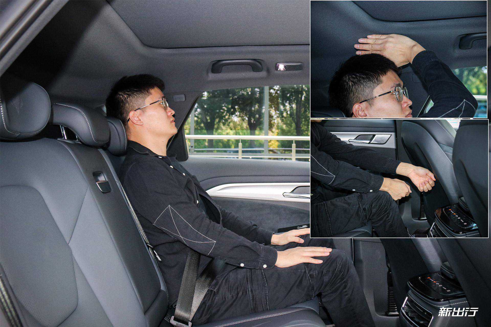 乘坐空间方面,身高178cm的@小白同学将前排座椅调至最低,此时头部空间还有一拳两指左右;保证前排座椅不动的情况下去到后排,此时后排头部空间还有一掌左右,腿部空间也还有两拳多的空间。