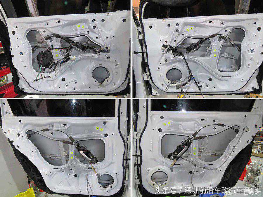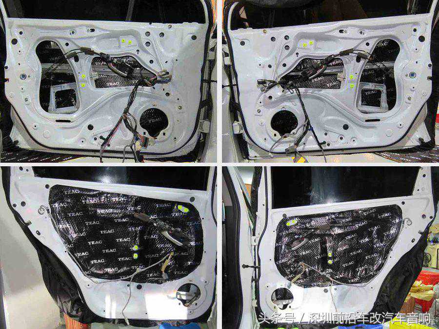 拆开车门饰板,我们都可以看到四个车门上粘贴着一层防水膜,与以往的不同车型一样,原车隔音大同小异。