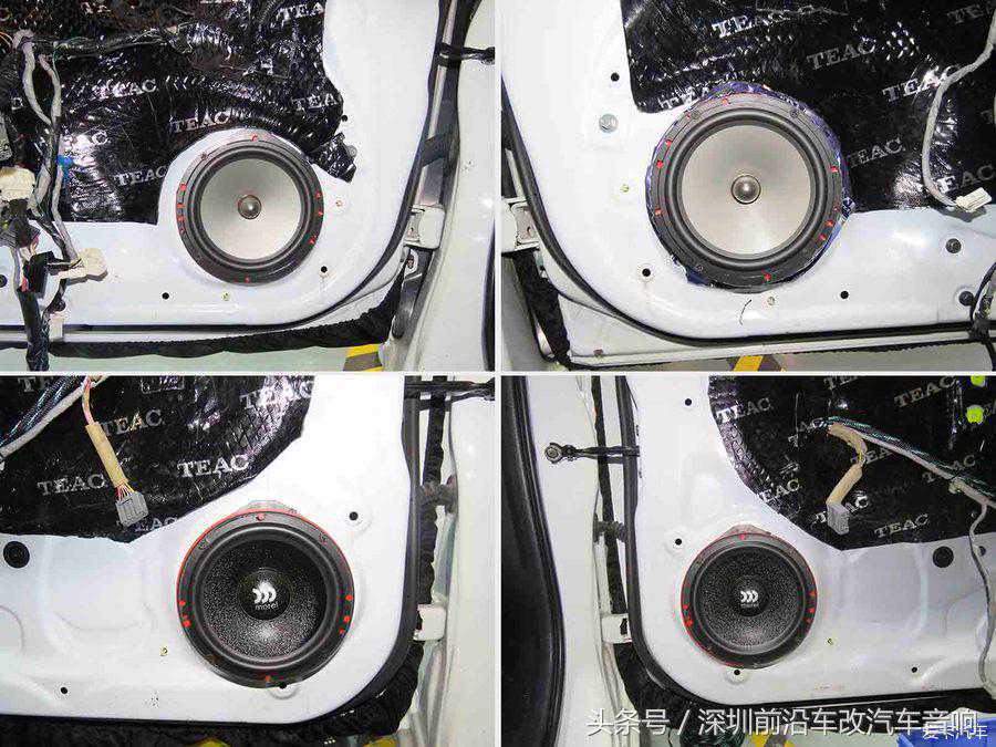 低音的倒模安装,选择了在后翼子板一侧。