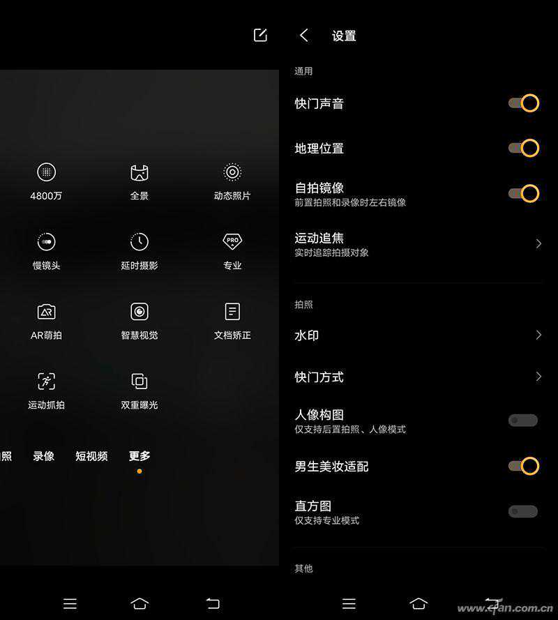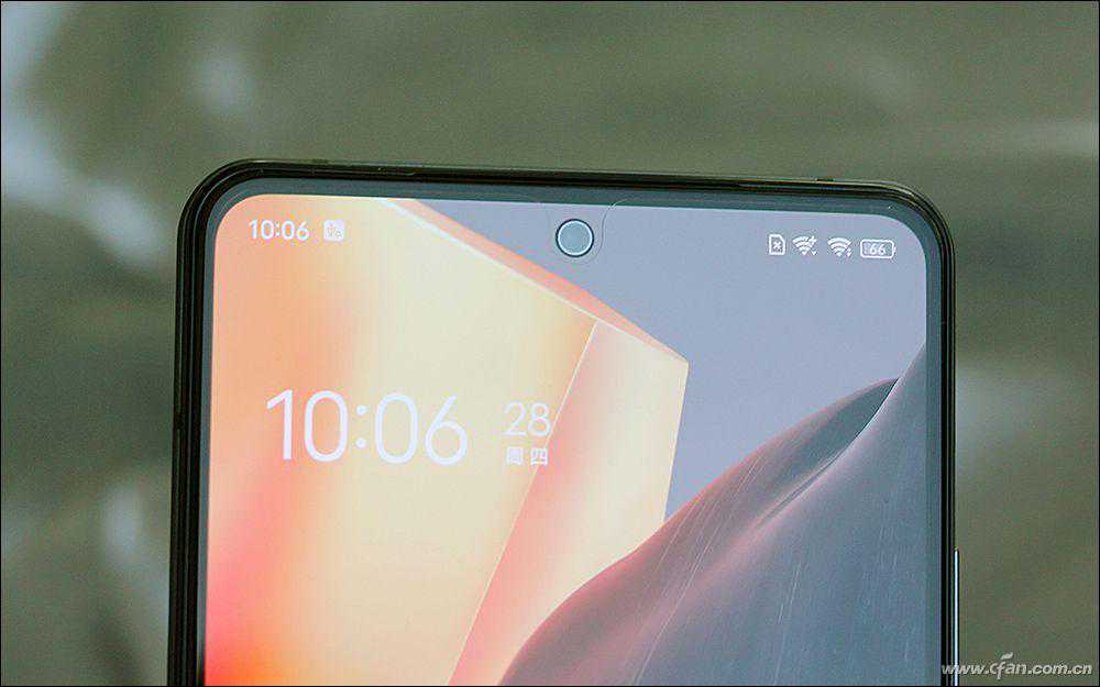 这款产品的3D曲面玻璃后盖引入了AG磨砂工艺,触感细腻且不易粘留指纹。CFan拿到的评测机为“黑境”配色,它经过4次打磨、2次抛光和58道工艺,两层玻璃中间使用独特“光刻透镜纹”,呈现出了真假交错的凹凸感线条,视觉上更显立体。