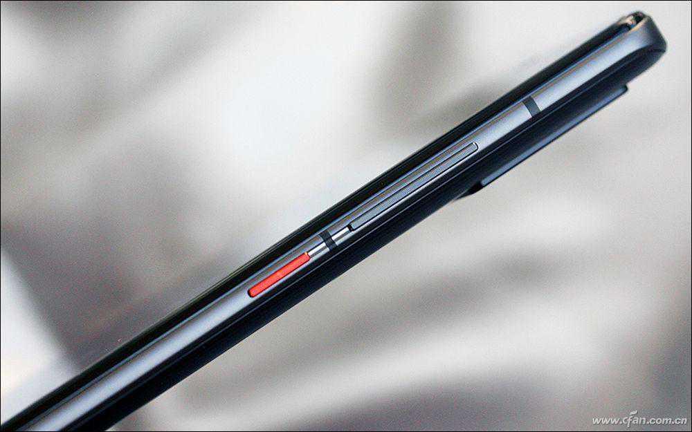 这款手机的电源键和音量键都位于机身右侧,表面都带有细密的条纹,按压时有着较为明显的段落感,其中电源键还被涂成了醒目的红色,极具辨识度。