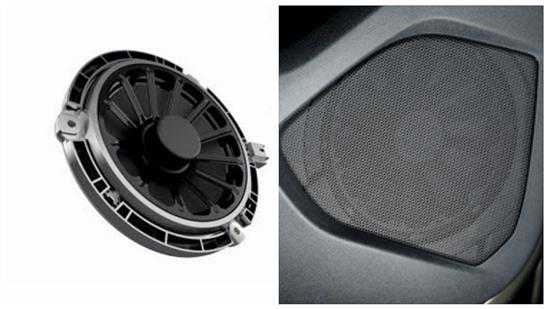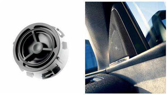 4个高音喇叭是Focal劲浪赖以成名的TNF铝制倒圆顶高音单元,与传统的正向圆顶喇叭相比,它是内凹结构,造型很有趣。高音喇叭的悬浮结构采用的是劲浪UtopiaIII(乌托邦)旗舰系列技术,这项技术成为Focal的专利已有40余年。它们被安装在前车门后视镜处以及后门中,能凭借全方位声音分布及其轻质的特性,确保了高音的准确性和丰富细节。