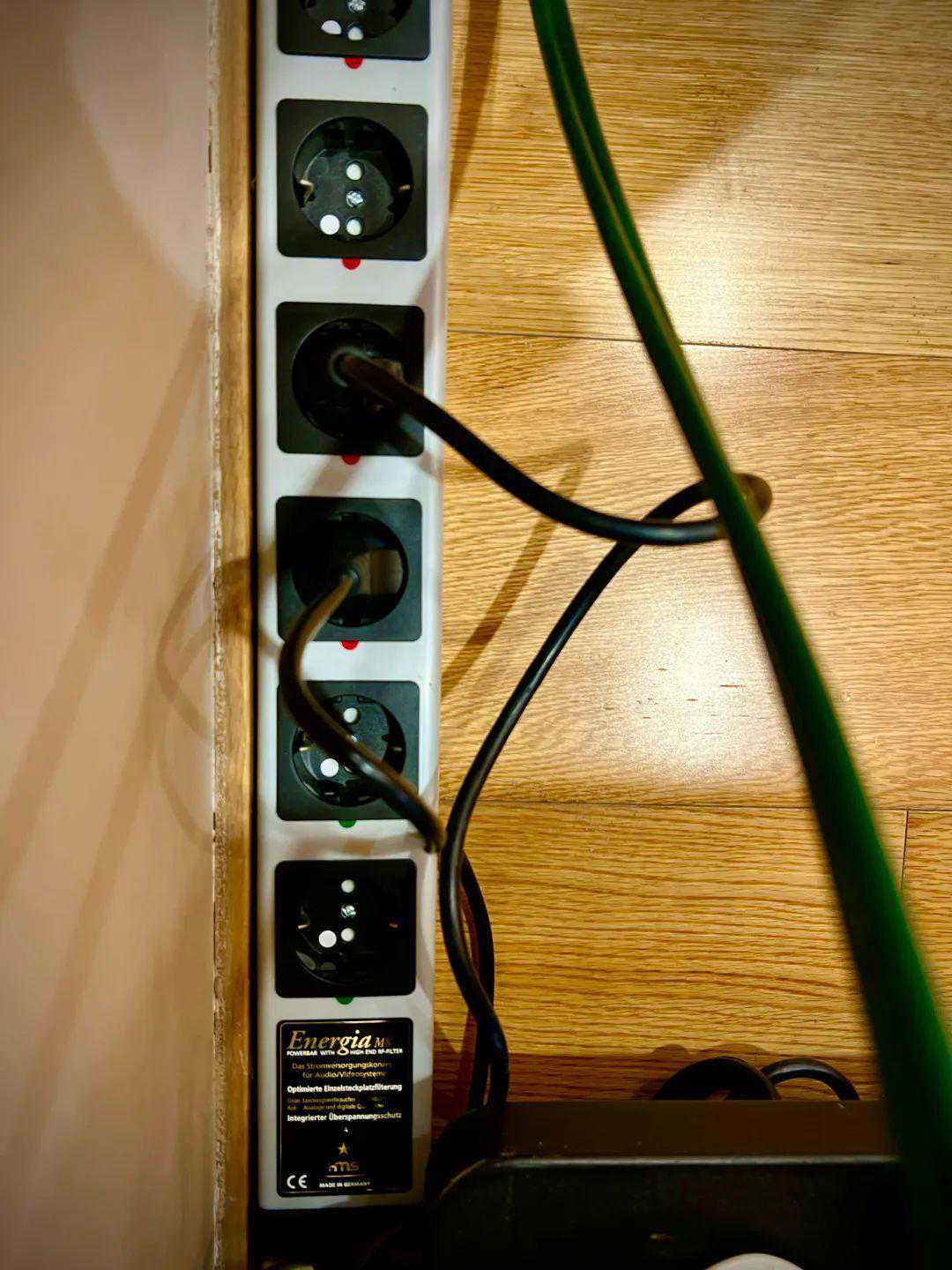 :跟机电源线的确是没把器材的效果完全发挥出来。但是因为我个人比较喜欢用欧标的电源线,而国内几乎没有欧标的发烧电源线。欧标电源线能够轻松切换电源线的相位,方便我调整系统的电源相位。上次在力高看到他们有德国HMS的欧标排插,所以果断买了一个,虽然不便宜,但是的确有效果。背景安静了,声场宽阔和深度也有提升。下一步看到合适的电源线,就要订购欧标的发烧电源线了。