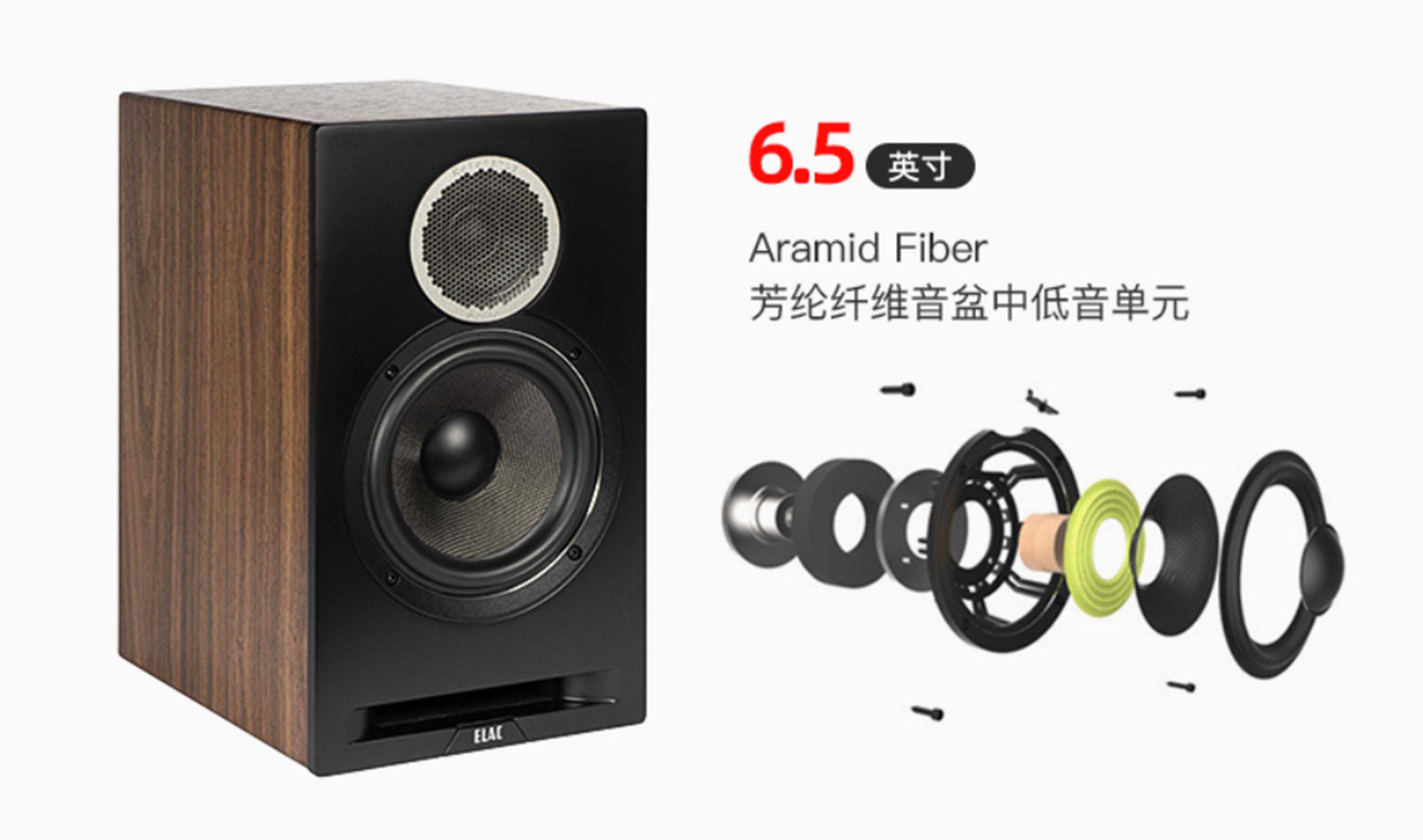▲ELACDBR62的6.5英寸芳纶纤维音盆中低音单元采用全新压铸盆架,提升了低音单元的散热性和抑振能力,另一方面加强了前障板的强度,减少了单元共振,最终实现更平滑、延伸性更好的低频音效。