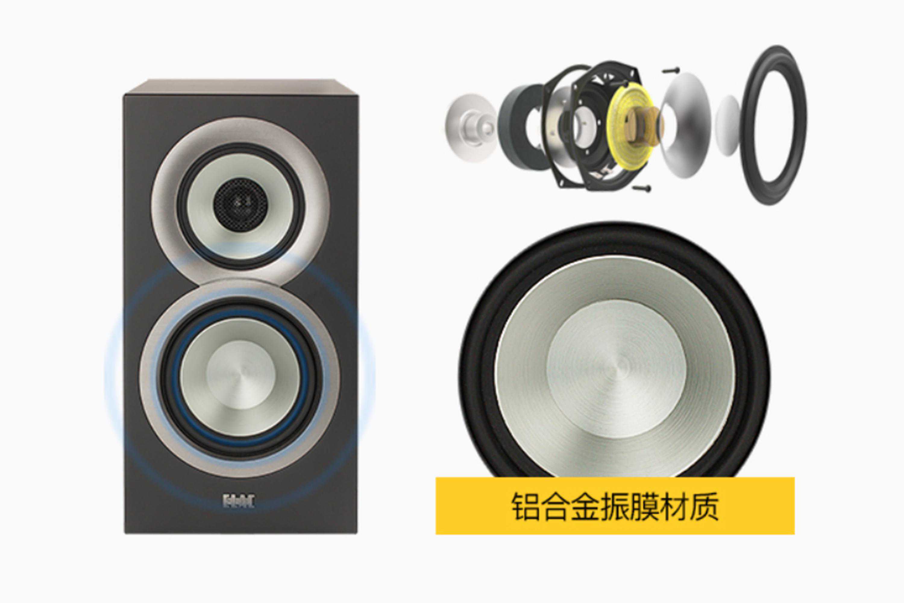 ▲扬声单元采用纯银音圈线和金属相位塞镁金属振膜,主打纯净高音和动态感强、失真少的中低音。