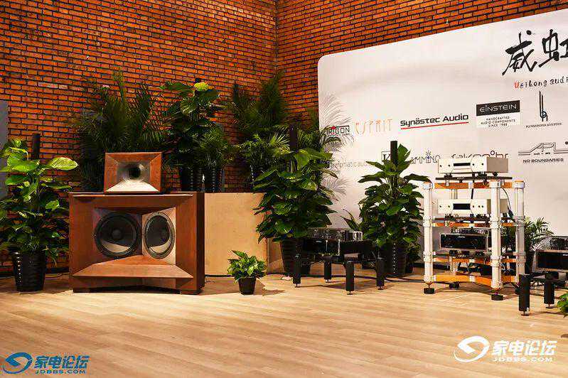 深圳艺致?可能不太看展会的朋友对这个品牌并不熟悉。可提到EIZZ的接插件,相信喜欢diy的烧友都不会陌生。他家的接插件近年来一直被坊间认为拥有极高性价比。而EIZZ的全套西装——黑胶唱机唱放+212单声道胆前后级+十五寸黄金号角音箱此次展会上让我领教了这套号角音箱系统在质感刻画上的独到之处。这套系统最大的特点就是极为饱满醇厚的同时又为中高音赋予了淡淡的金色的光泽感。