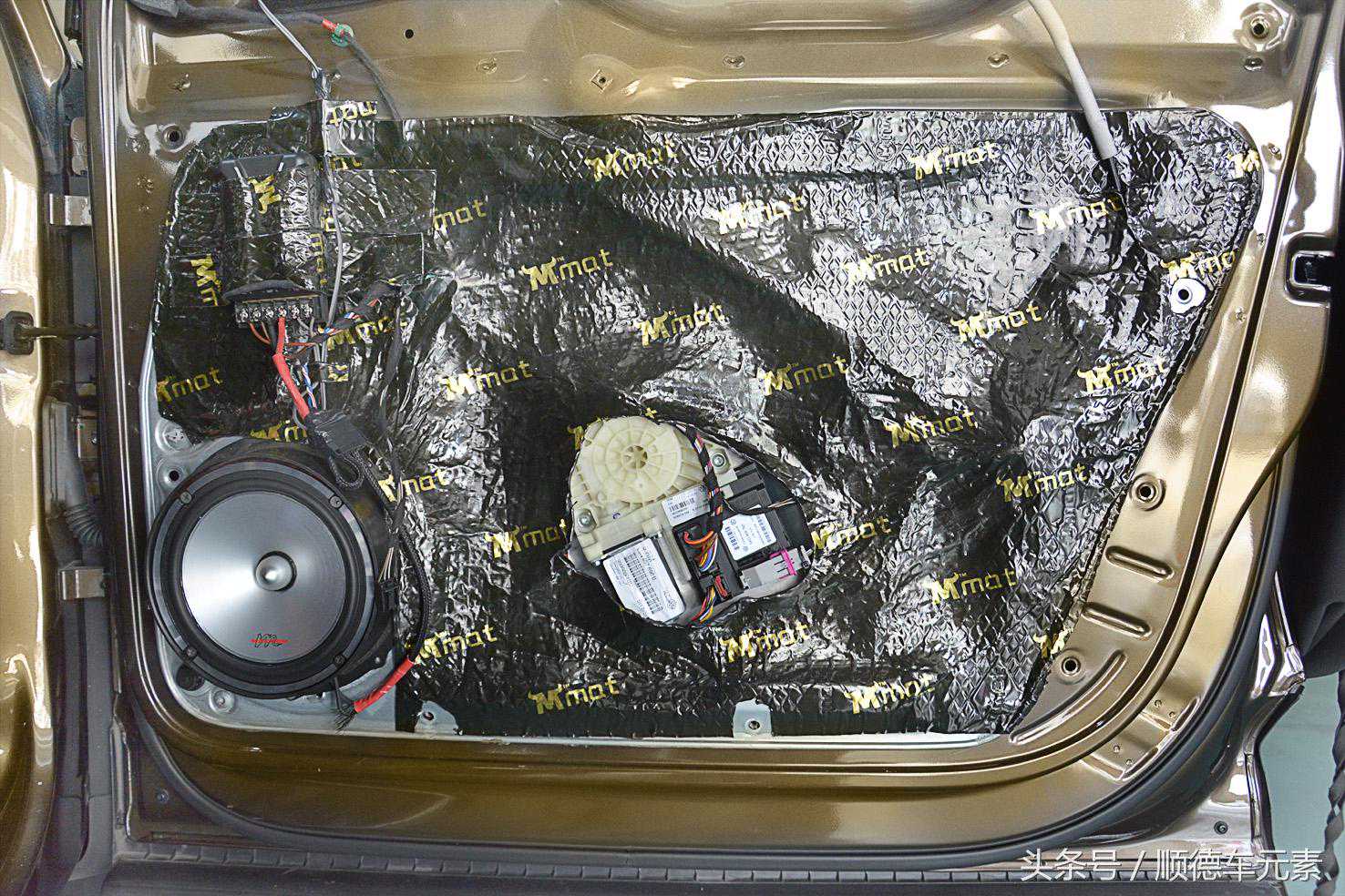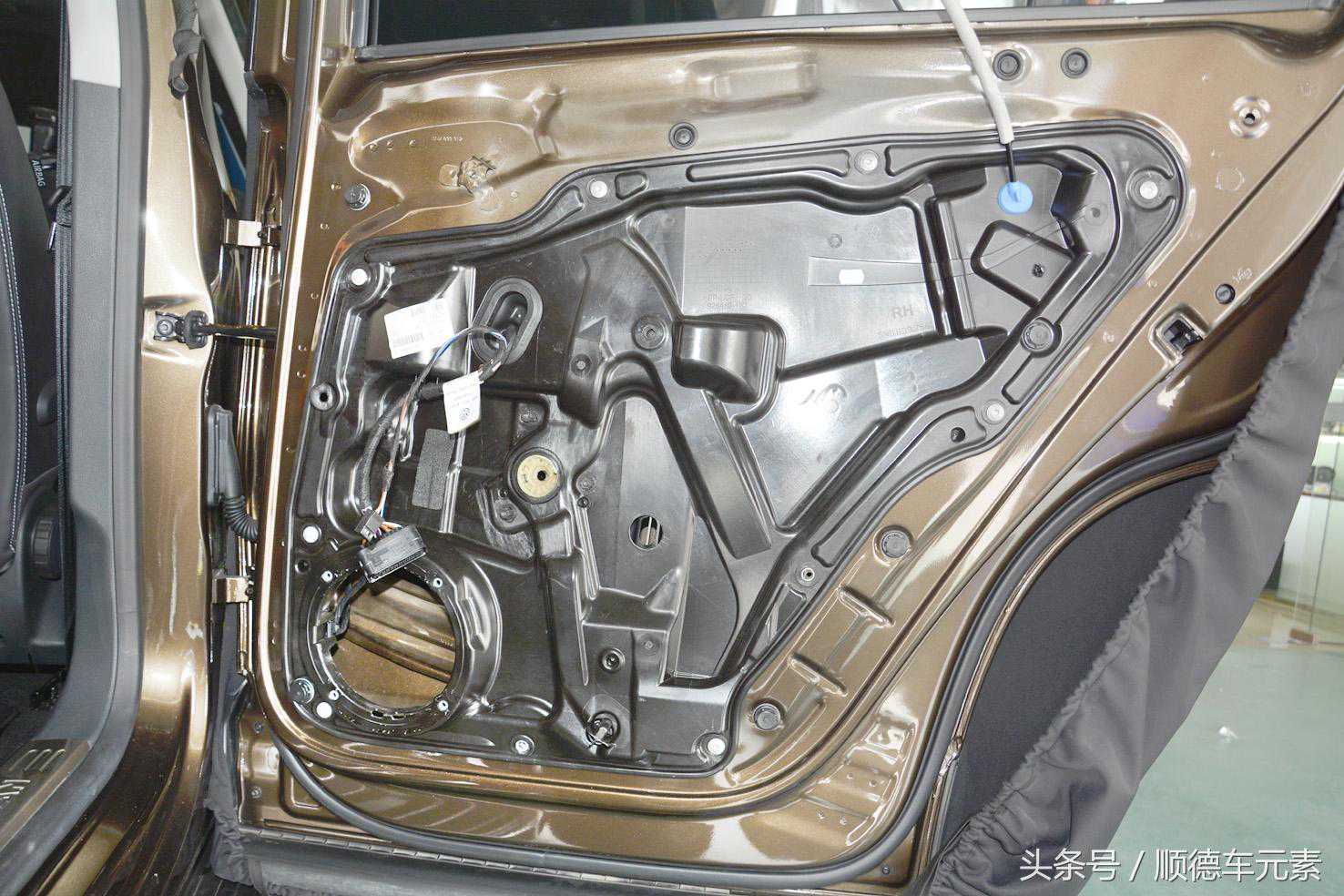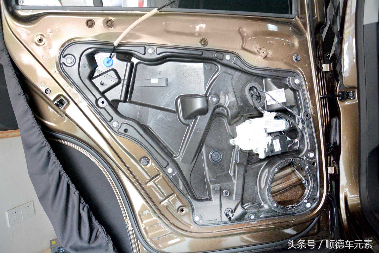 开始进行四门隔音了,首先是拆卸内饰板,细心的朋友可能已经看出来了,途观的玻璃升降器在隔板上,这就要先将其分离,才能拆卸隔板进行内部隔音,其中的复杂精细操作被熟练的技术师傅们轻松解决了。