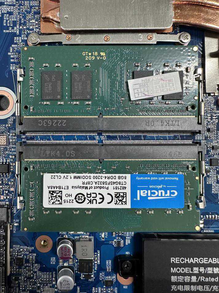 内存方面是两条英睿达的8GDDR4内存,3200频率,双面颗粒,可以自行拆换。