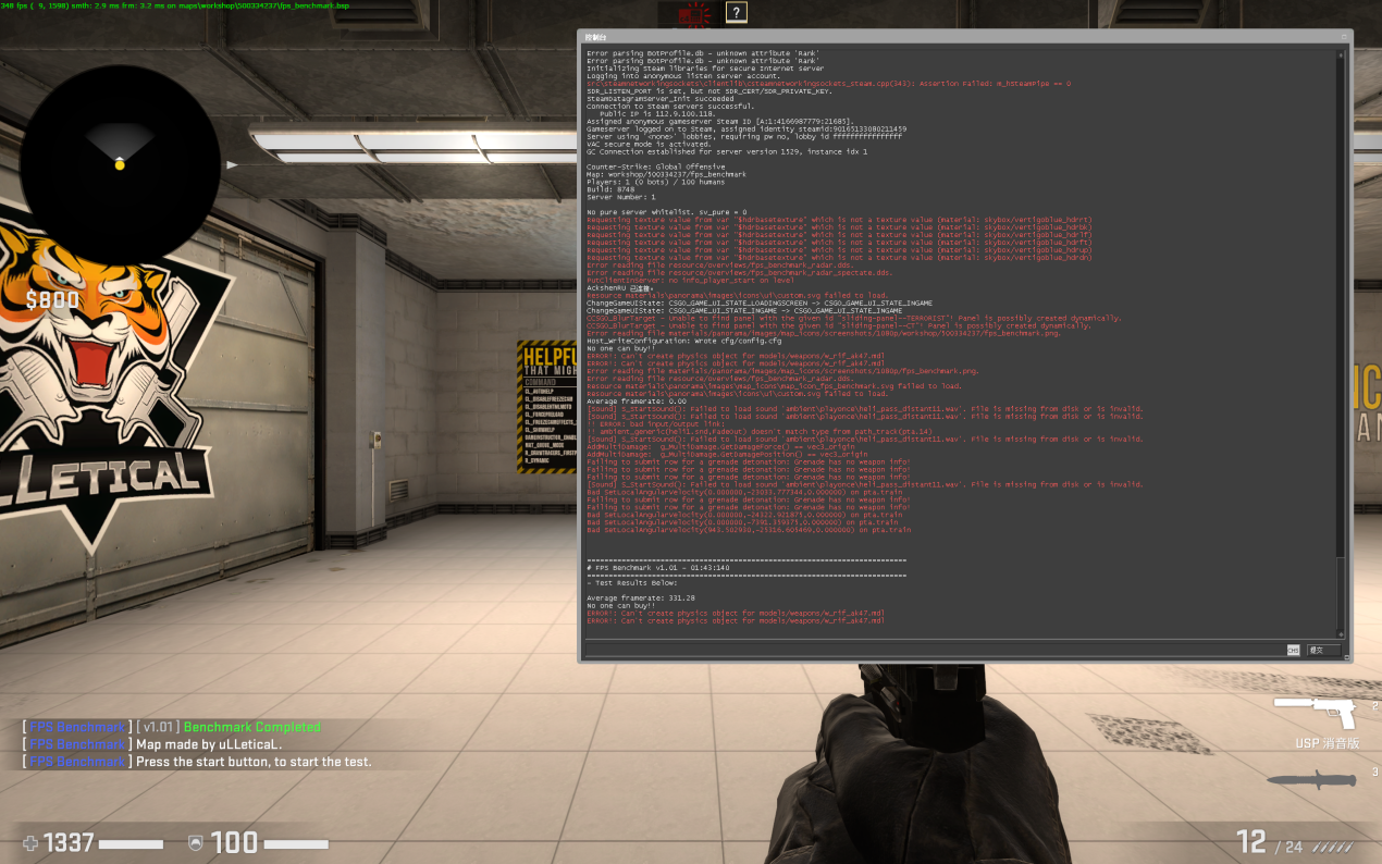 首先是电竞游戏,我们选取了《CS:GO》、《守望先锋》:归来和《绝地求生》三款主流的电竞游戏进行测试。在《CS:GO》中,平均帧数达到了331帧,这个帧数相当给力。