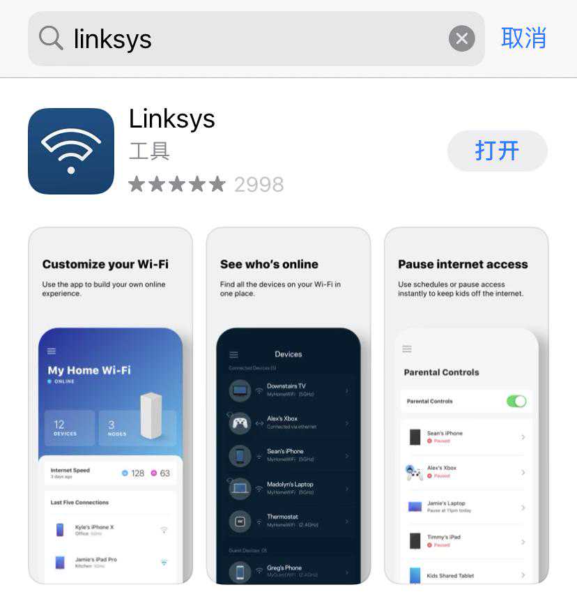 配置组网还是很简单的,主节点连接光猫,插上电源,手机下载安装LINKSYS客户端。