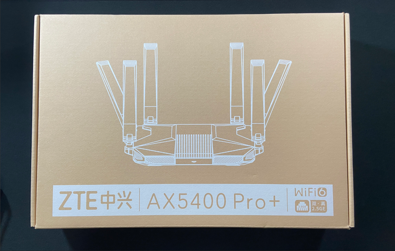 AX5400Pro+的这个包装盒子就很大,拿在手上也很有分量,下面除了印着大大的产品型号外还印着这是一款WIFI6的双·真2.5G接口,意思是目前市面上有的产品虽然说有两个2.5G口,但其实从WAN到LAN、WAN到Wi-Fi不一定都能跑满2500M。