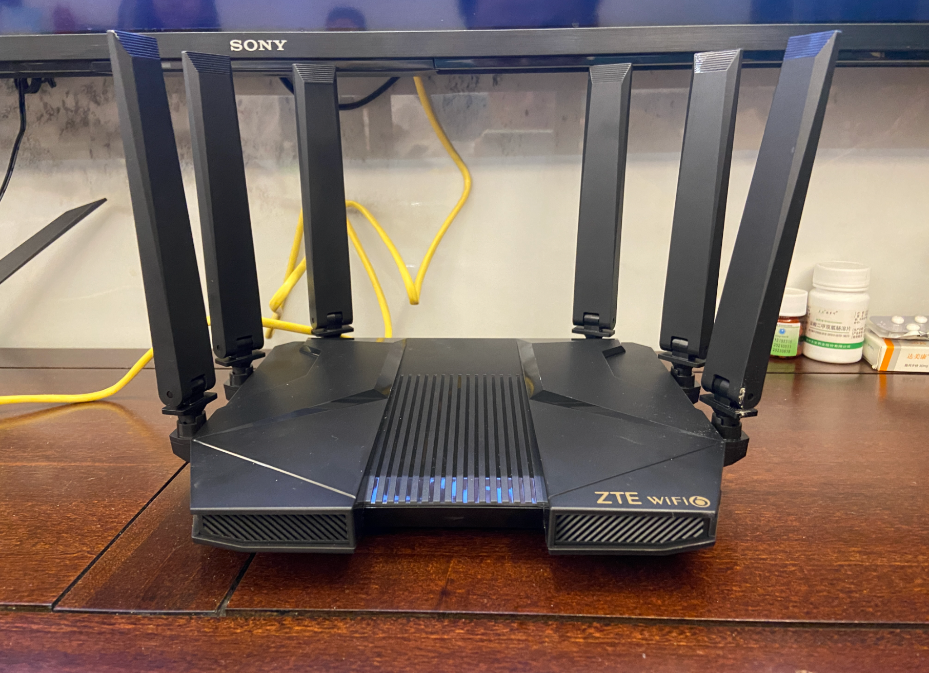 最后将5400Pro+放在客厅电视柜上,这样可以方便播放器或者是NAS之类的设备,客厅也是平时的主要活动区域,这个位置也可以让大家的手机信号保持最强。