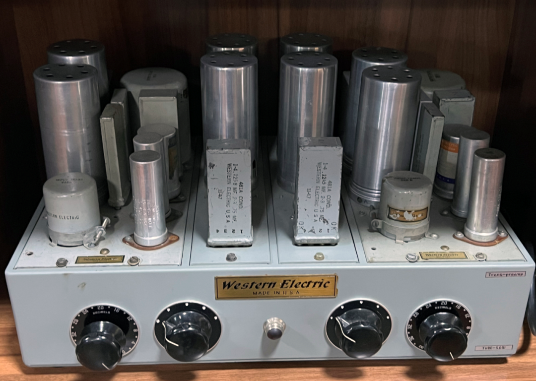 曾经介绍过的林宪平牧师,则是负笈美国深造时,在加州自宅的邻居知道他是位发烧友,主动联系说有一整屋子的古董器材要出清,请他来参观一下。林宪平说仿佛是天上掉下财宝,一屋子居然都是珍贵的西电古董机与电子管,主人开价100万美元,最后林牧师倾其所有加上借贷以70万美元全数收购。究竟有多少东西林牧师也说不清楚了,总之他专门请一个人打包发货,前后费时四年才把所有古董器材运回来,而他租了好几个仓库才能存放,从此林牧师走上西电的收藏之路。与林牧师一起出钱出力的,正是前述的刘正平,由于在收藏圈的知名度打开,连日本几位西电老前辈也主动加入协助,可以说已经曝光的精品他们都清楚来龙去脉。