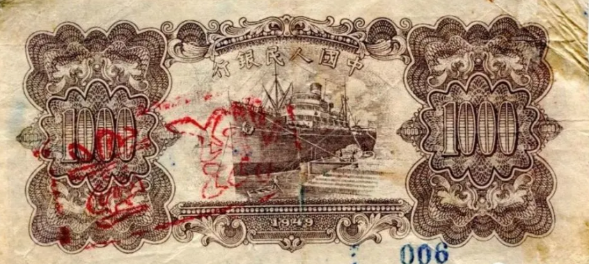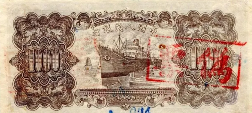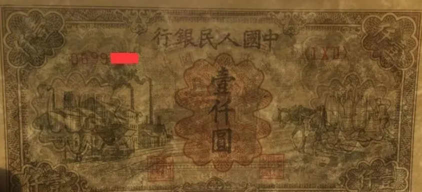 第一版人民币壹仟圆运煤与耕田背面