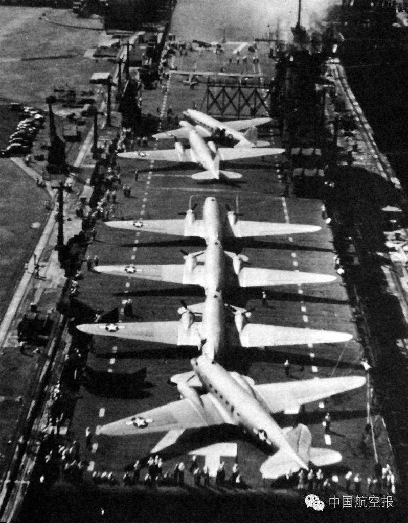 由于飞行甲板较窄,R4D的翼尖有可能碰上航母的岛式上层建筑
