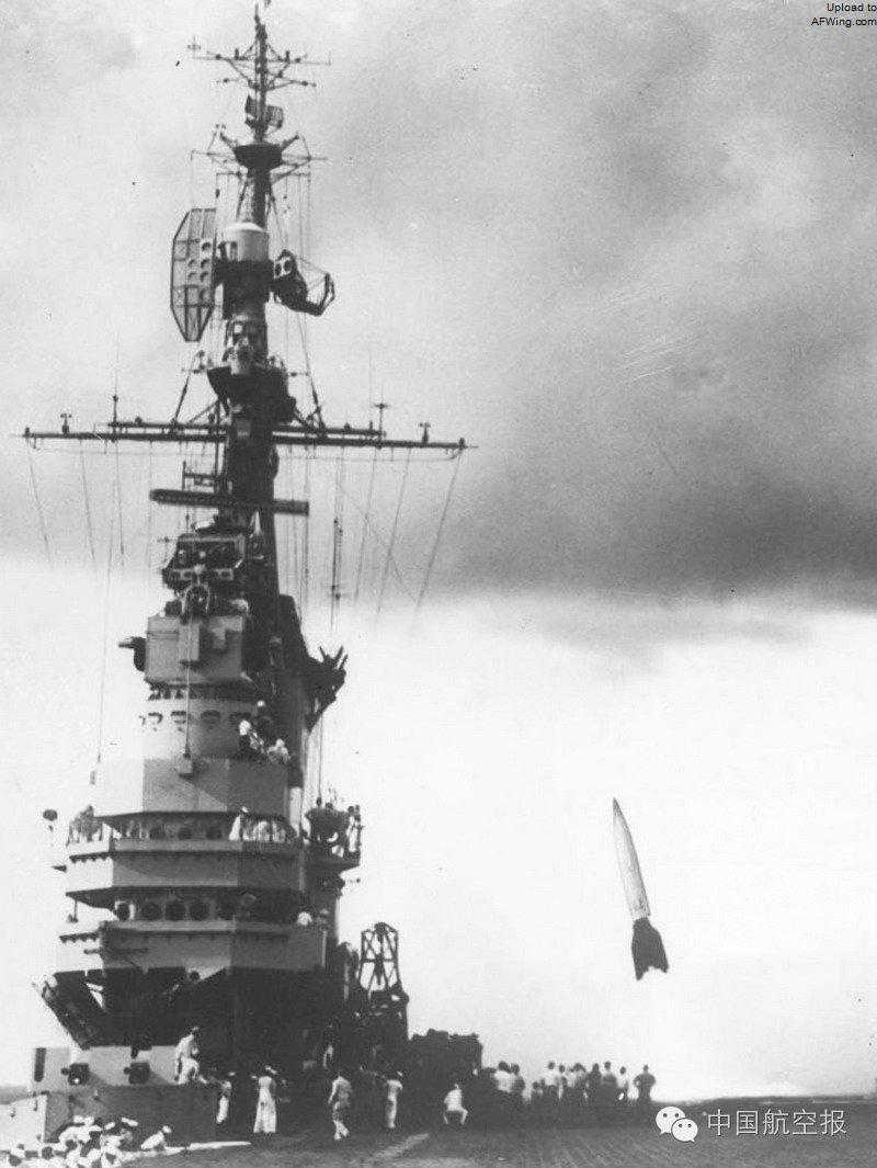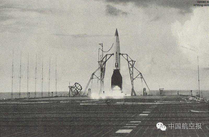 一枚V-2从“中途岛”号上发射升空