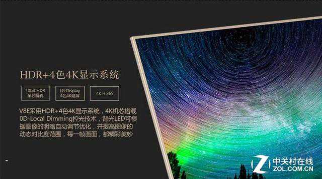 创维60V8E采用的是全金属外观,香槟金颜色散发别致高贵的气息。边框采用全新7系列铝合金材质,历经89道工序,精细的CNC加工打磨和阳极氧化工艺成就其出色的金属质感。采用的LGDisplay4色4K硬屏,4K机芯搭载0D-LocalDimming控光技术,背部LED可根据图像的明暗自动调节优化;拥有10bitHDR解码芯片,精准展现10亿色彩,画质呈现细节出众、鲜亮惊艳。同时采用了4解码技术,更加流畅高效的观看4K影视资源。