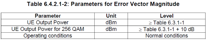 对非256QAM的调制方式来说,测试功率只要求比最小发射功率高即可,而256QAM的测试要求功率比最小功率高10dB以上。也就是说并不需要在最大功率下测试EVM,大多数场景下只需要比最小功率大即可,但我们测试往往是设置的最大功率,这样的场景最恶劣,也最容易发现问题。