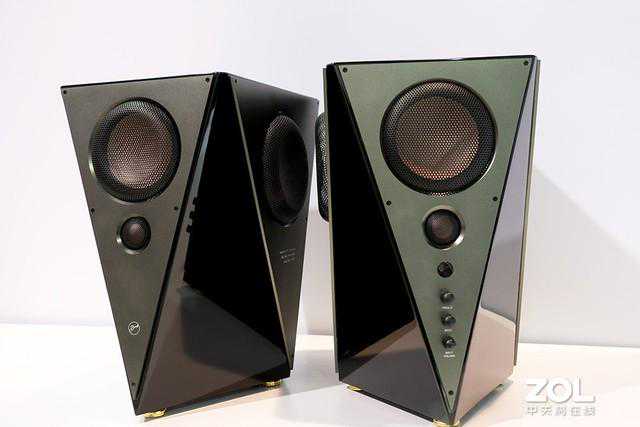 下面这个看上去造型非常特立独行的音箱就是TS300了,采用创新的多面倒三角对称设计和十分精致的黑色钢琴漆搭配银灰色铝面板箱体。正面倾斜面板设计,非常有意思的是它正面配备了一只5.25英寸中低音单元和一只26mm金属高音单元,同时左右两侧还配备了两只6.5英寸大口径超低音单元,单看这个设计就知道低频绝对了得,而事实上也是如此哦!