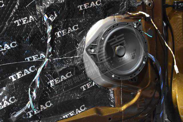 改装师对吉利博越进行一番仔细的查看以及结合车主的品味与要求后,开始进行了改装工程。针对原车音响系统高音浑浊,低音无力的现象,上海道声为吉利博越的前声场替换上了一套德国曼斯特CS6508IV两分频,装在前门板原位,与原车设计无损结合。后声场则用一套美国JBLGTO608C两分频加以辅助,保证后排乐感的均衡。一台德国六路功放巧妙地引线装在备胎侧边,既有效利用空间又保证能给喇叭的发挥,提供足够动力输给。