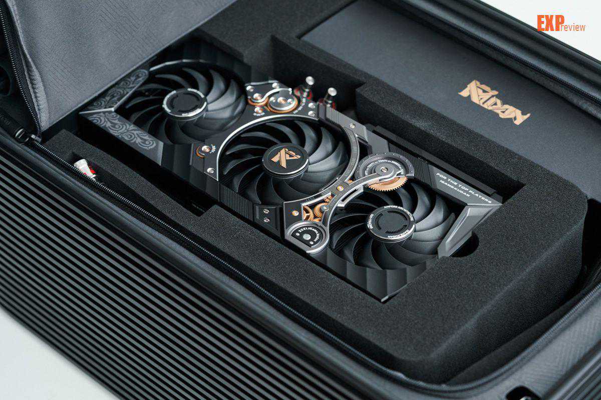 如今在iGameRTX3090Kudan显卡上我们再次看见了这个行李箱,仍然是全铝打造,手感细腻,做工精良,而且还附带有密码锁,京东同款售价为2399元,这应该是我们见过的最有诚意的显卡包装了。
