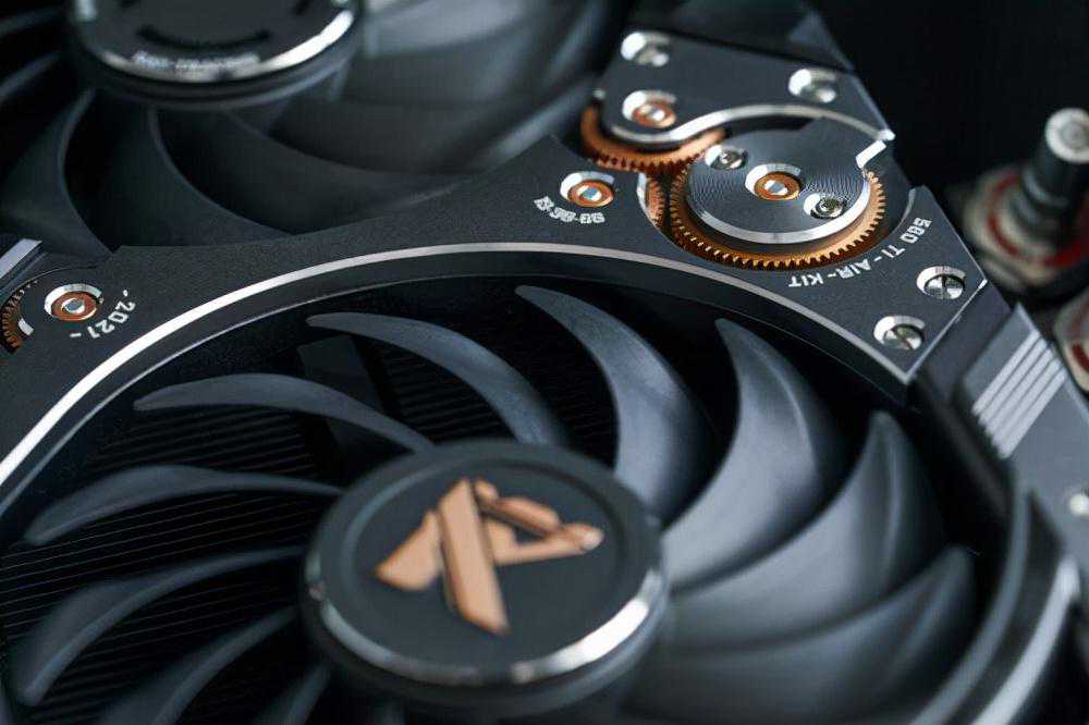 iGameRTX3090Kudan显卡整个导风罩都是使用金属打造,有着波浪纹的造型,而且磨砂手感非常细腻,超越一般显卡的做工,前前后后加上大大小小齿轮和各式零部件均为CNC工艺打造,共计由200多个零件组成,而且在拼装中还应用了“45°倾斜美”的理念,无论是波浪纹还是拼装间隙,均与横中轴线呈45°夹角,而这一个设计,iGame称之为“九段折角”。