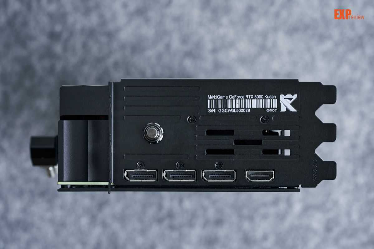 其实与其说iGameRTX3090Kudan在散热规模上有做什么升级,我们认为其最大的区别还是快拆式止水阀从固定角度改进为可多角度旋转,这个变化非常重要,意味着水冷排的安装位置不再有限制,玩家完全可以通过优化水冷排安装位置来进一步改善显卡的散热,这也让显卡可以更充分地展现“DIY精神”。