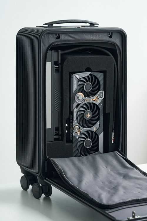 转动密码锁后按下开关,行李箱的前盖将会打开,再开了一层拉链,你就能看到iGameRTX3090Kudan显卡静静地躺在里面。而拿掉显卡和附件后,用于保护作用的海绵也是可以轻松取出的,随后行李箱就能单独使用。