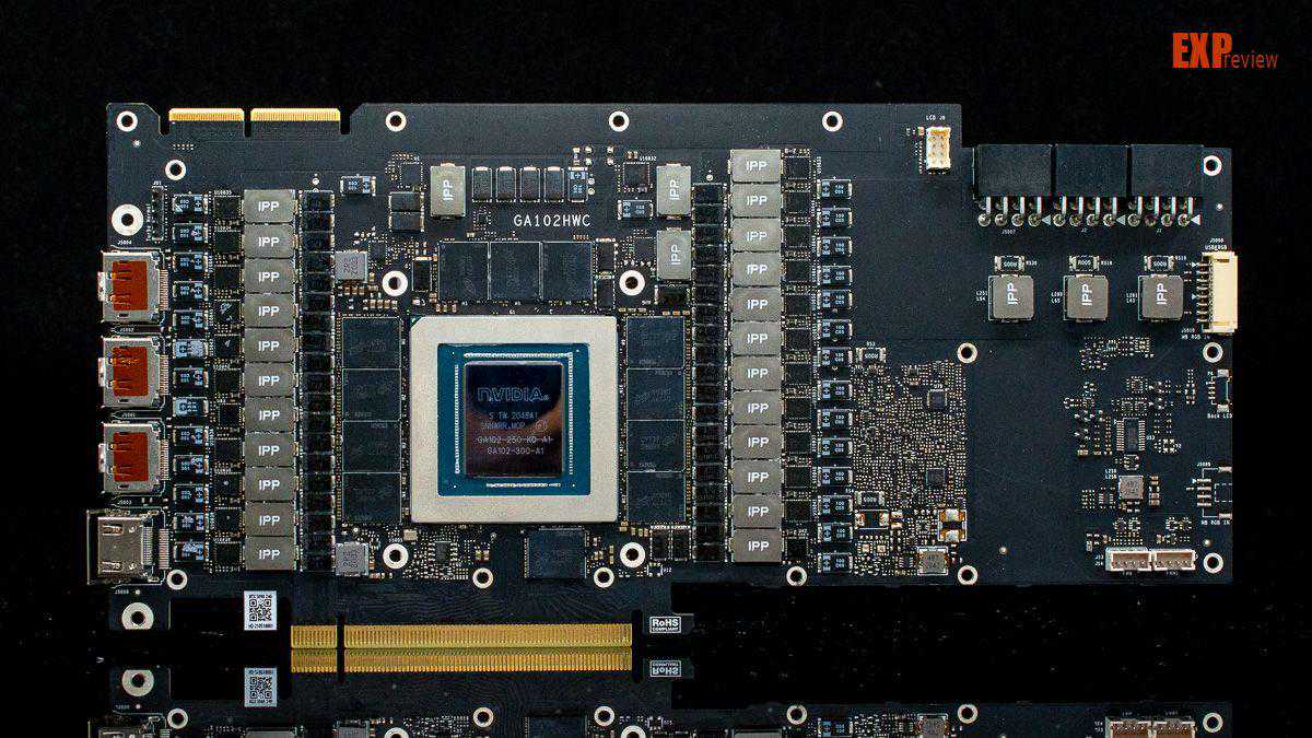 显卡配置有24颗美光GDDR6X显存,单颗容量为1GB,总容量为24GB