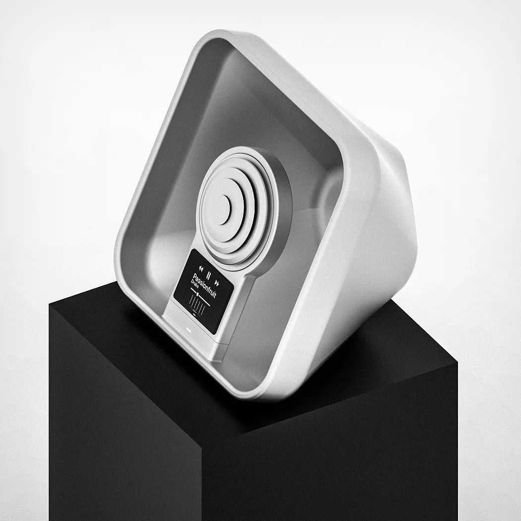 这是一款音箱设计,用户可以通过拉开或收缩音箱来改变播放的音量,很不错的创意。