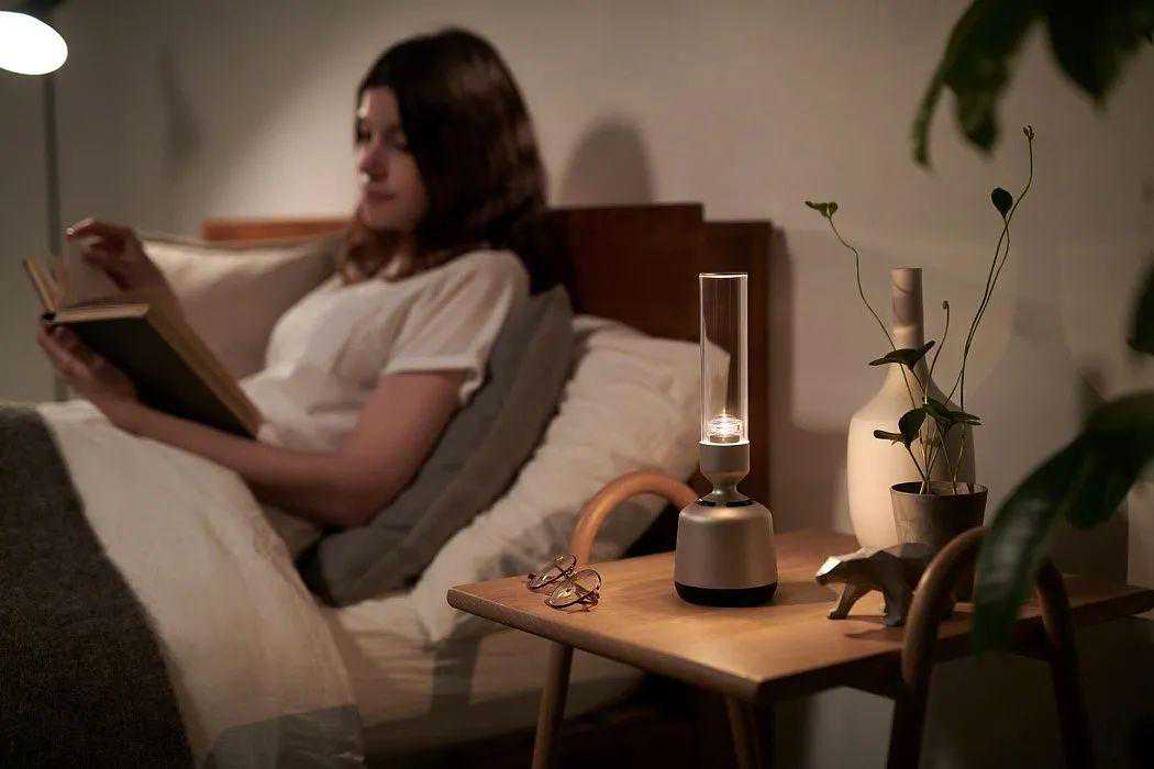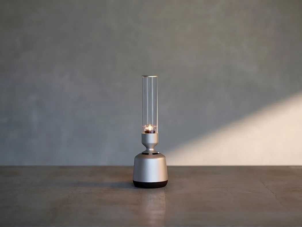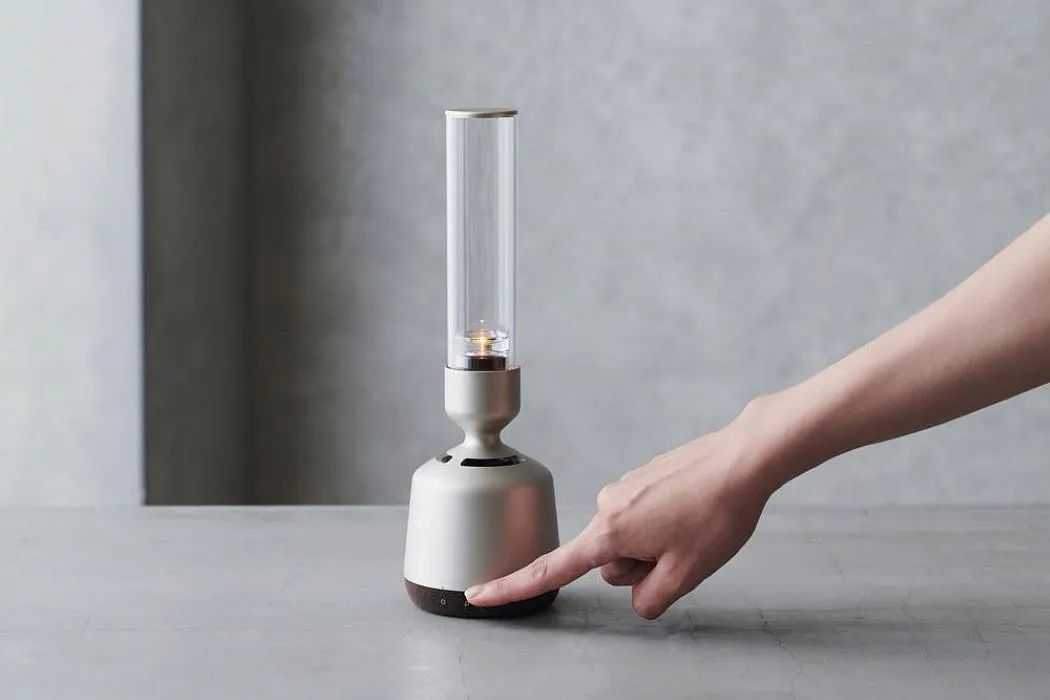 这款音响设计看起来像一个蜡烛台。