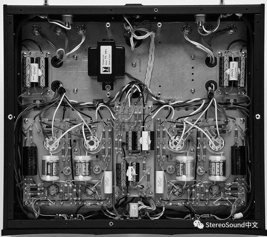 顺便说一下,输出级和合幷式放大器一样,采用了独特的恒流偏置电路,通过EL34推挽获得32W+32W。不过,初级和驱动级形成直连电路,和输出级的耦合采用了实施了抑振措施的新一代的纯银箔电容器。另外,电源电路的电容器已经由高性能的管型构成。而且电源变压器搭载了新设计的大型切割铁芯型。此外,各处电路的定数和电流值最适化,在形成理想的单回路的实装设计的基础上,采用了L/R对称的双单声道结构。